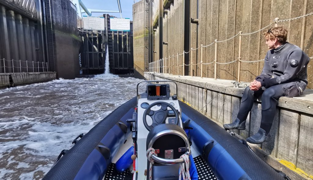 One of our club members arranged to do some boat handling practice today in preparation for a Diver Coxswain exam. The weather conditions were not much of a challenge, but it was also a chance to check the club rhib out prior to it going to West Wales for the summer. The hope is to get lots of Club diving in Pembrokeshire over the next few months. The launch and retrieve at Channel View slipway was smooth and uneventful and Cardiff Bay and the Barrage locks were surprisingly quiet for such a nice spring day.